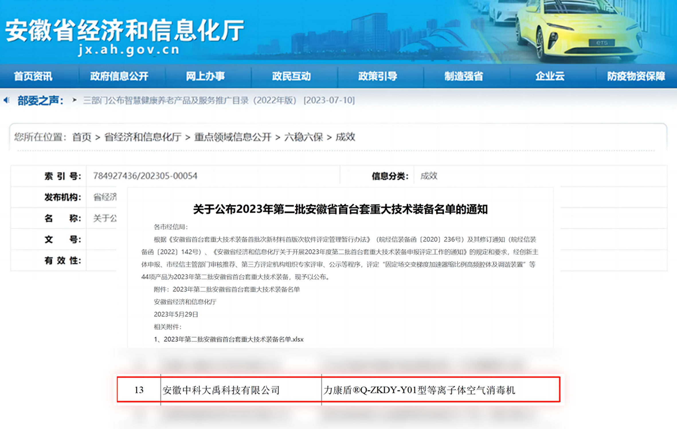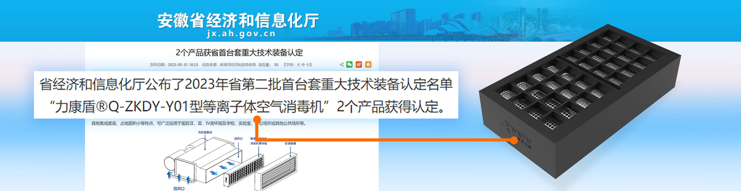 力康盾?ZKDY-G-180-P型等離子體空氣消毒機入選2024年度第三批安徽省首臺套重大技術裝備,評定等級:國內(nèi)先進