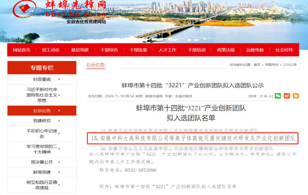 中科大禹入選蚌埠市第十四批“3221”產(chǎn)業(yè)創(chuàng)新團隊